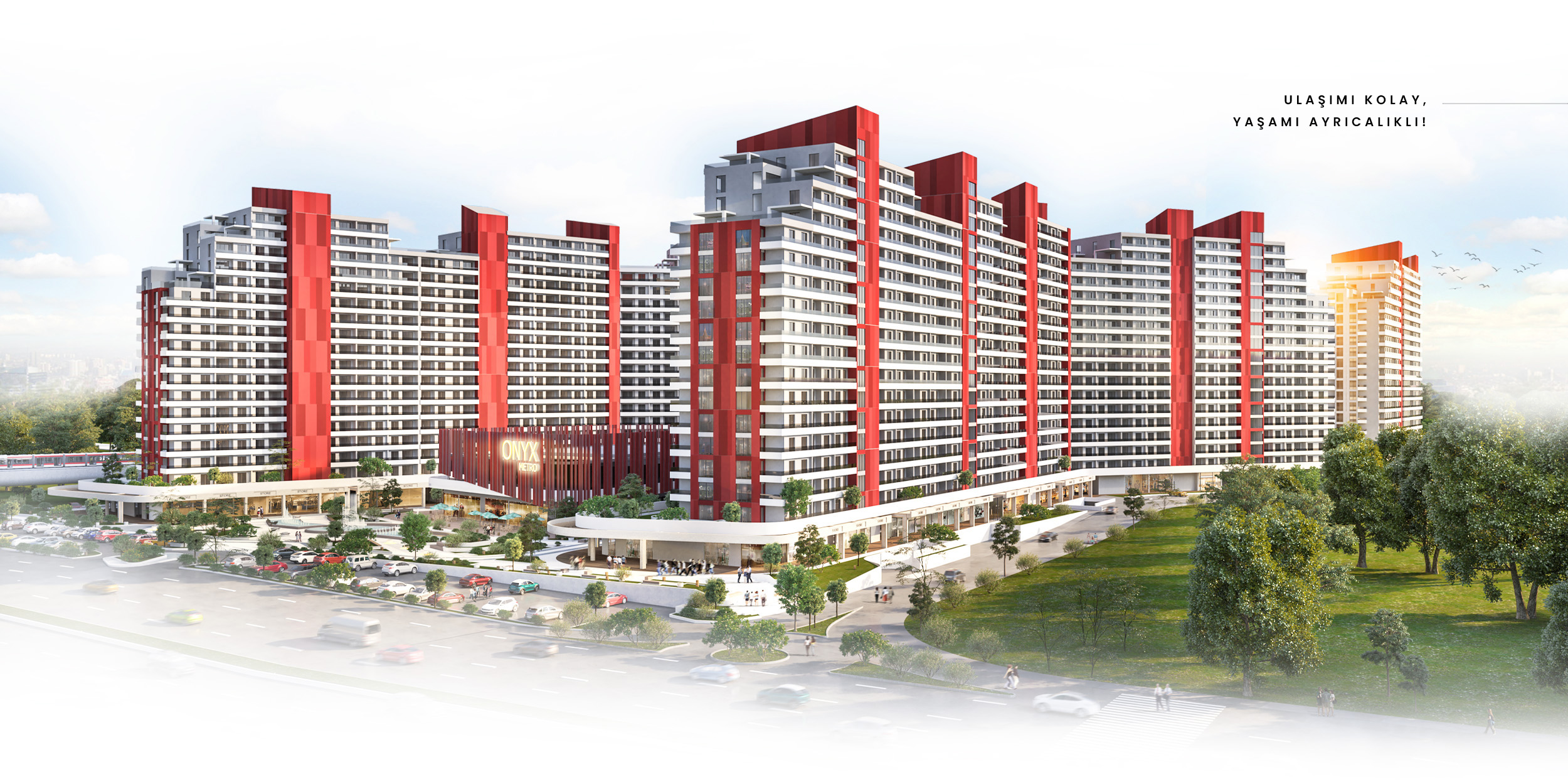 Şehrin merkezinde, hayatın her yönüne dokunan bir noktada yükseliyor Onyx Metro; İstanbul Yolu’na ve metro istasyonuna cephe konumuyla, ulaşımda zamansız bir konfor, şehir yaşamında kusursuz bir akış sunuyor. Şehrin ritmi burada başlıyor…